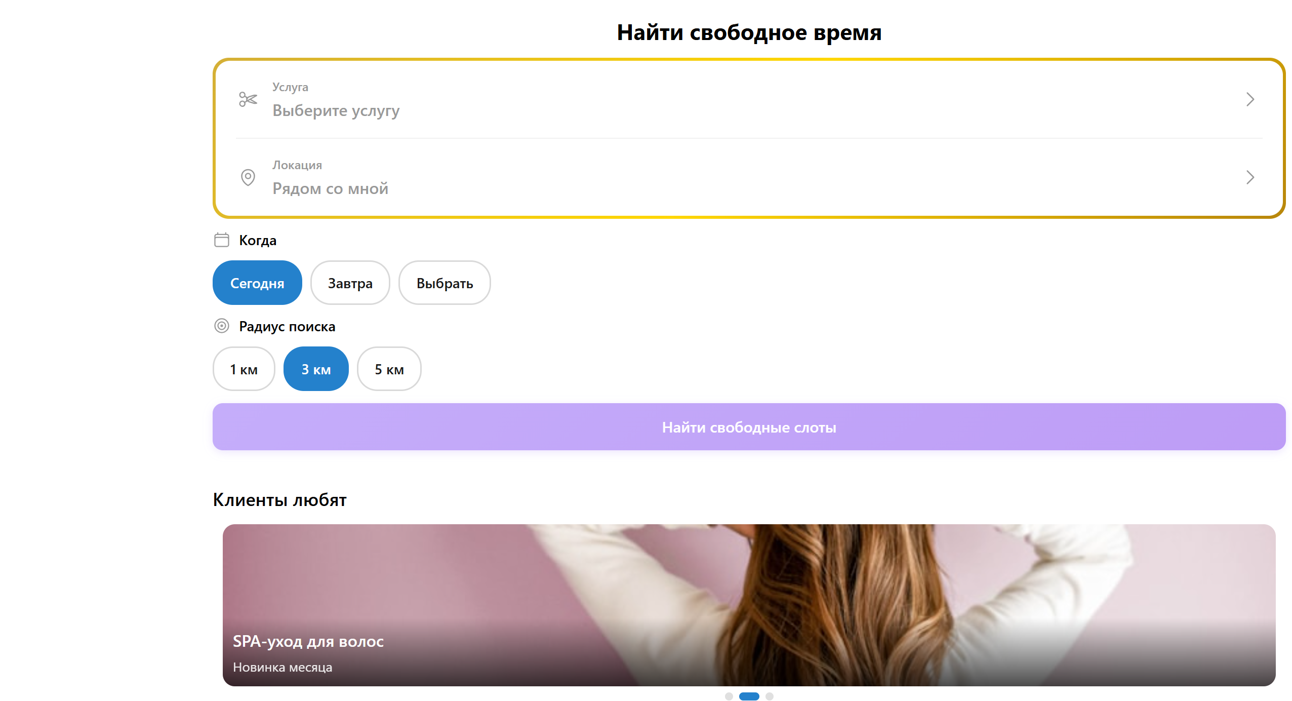 - Поиск услуг по категориям и локации
